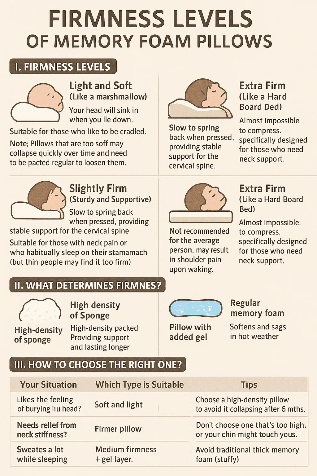 Concernant les différences de fermeté entre oreillers en mousse à mémoire de forme , voici une explication :