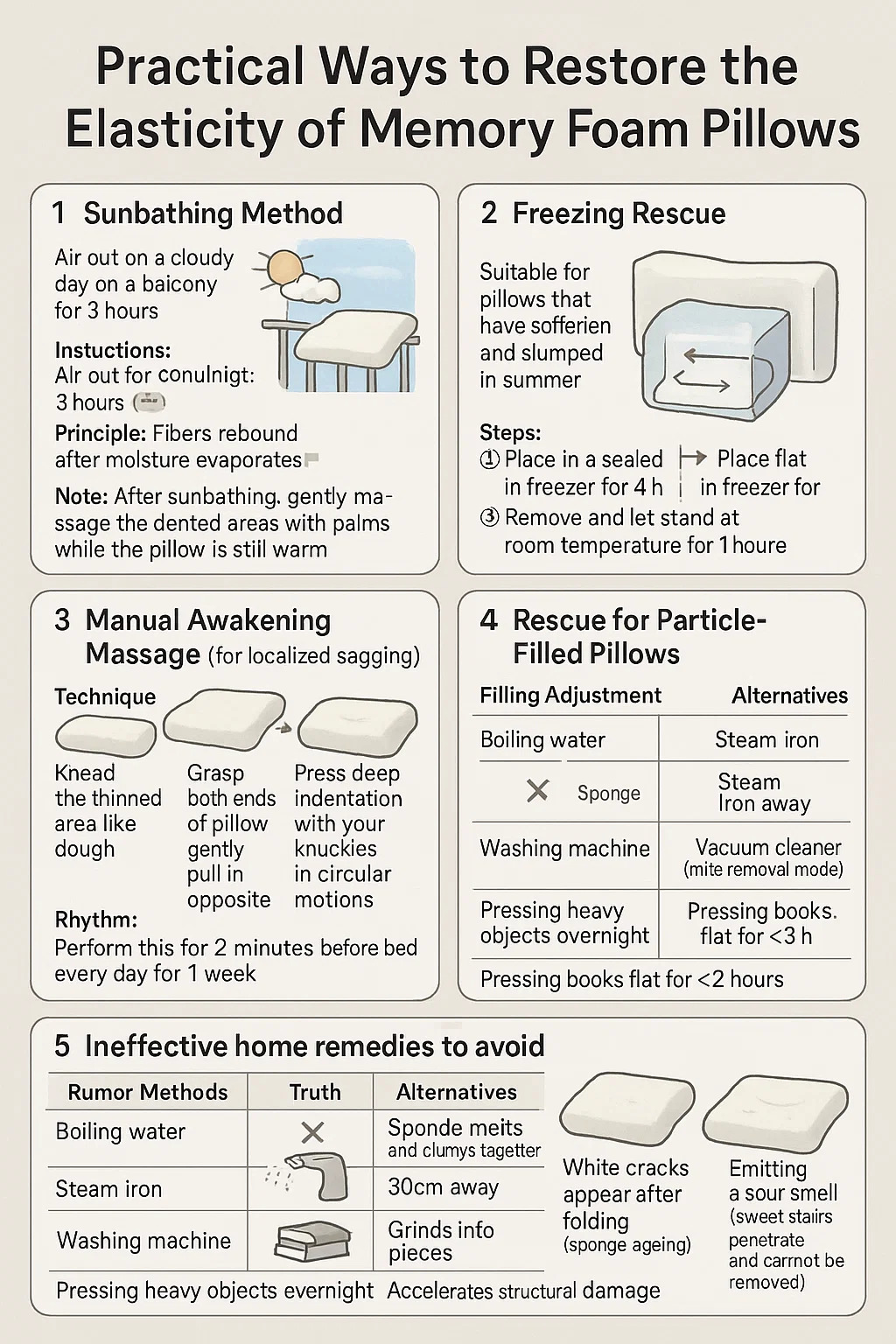 Voici quelques moyens pratiques pour restaurer l'élasticité de oreillers en mousse à mémoire de forme :